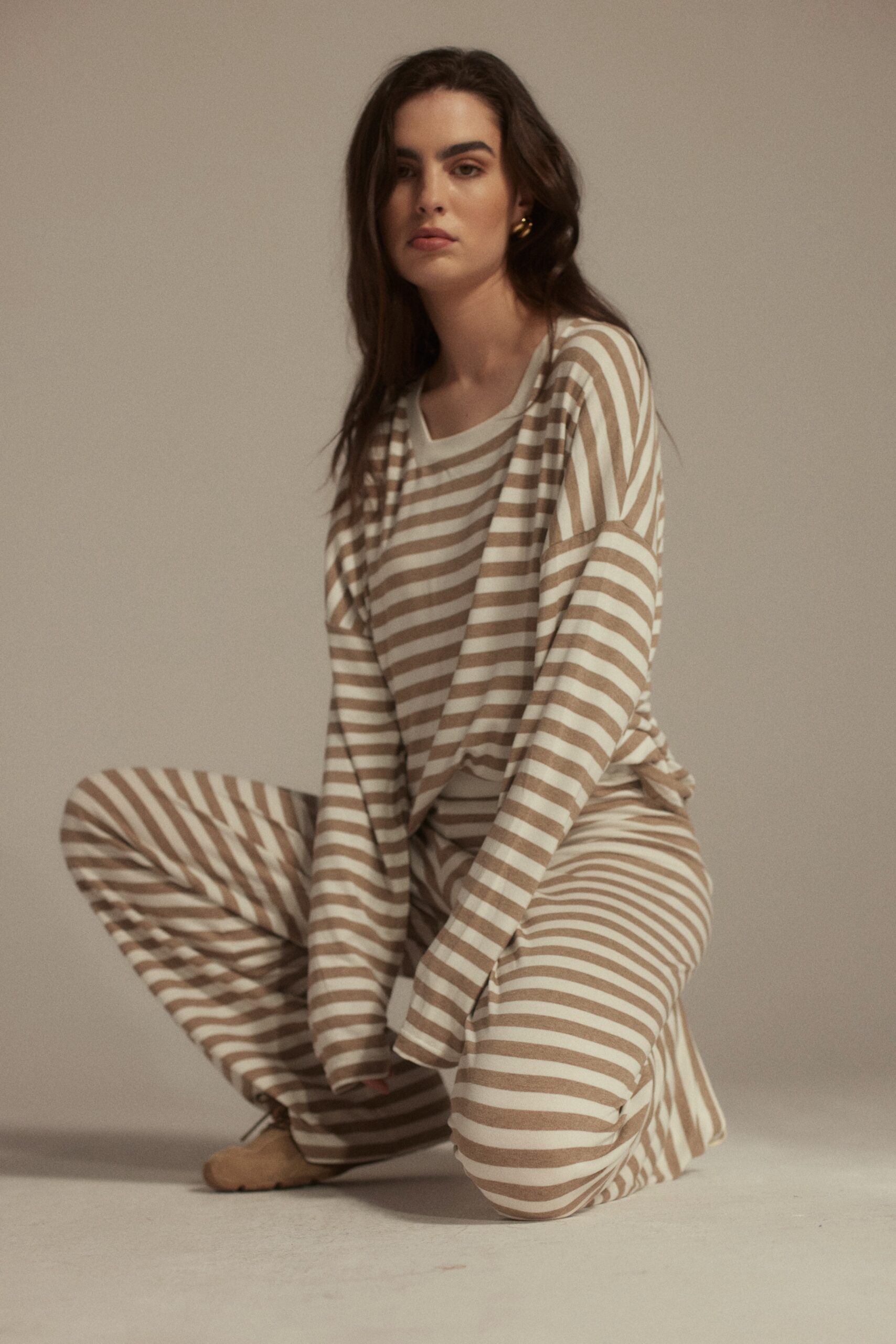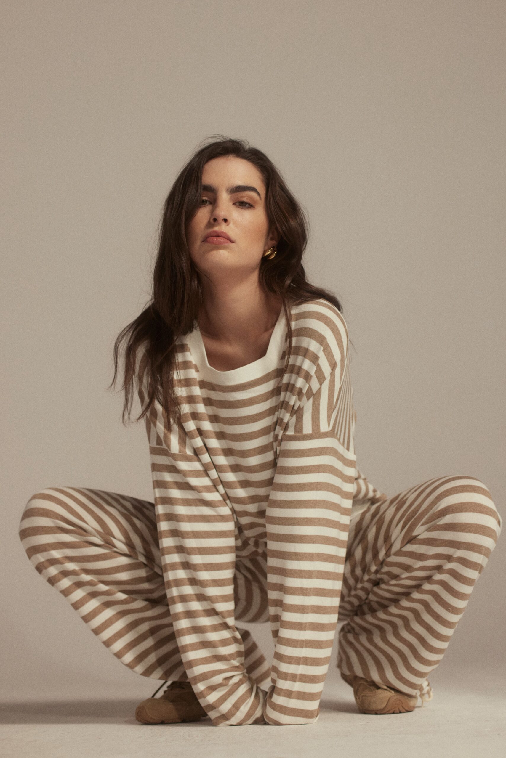 Komplet w paski to idealny wybór na weekendowy, swobodny styl. Bluzka Gisela doskonale pasuje do spodni Erik.