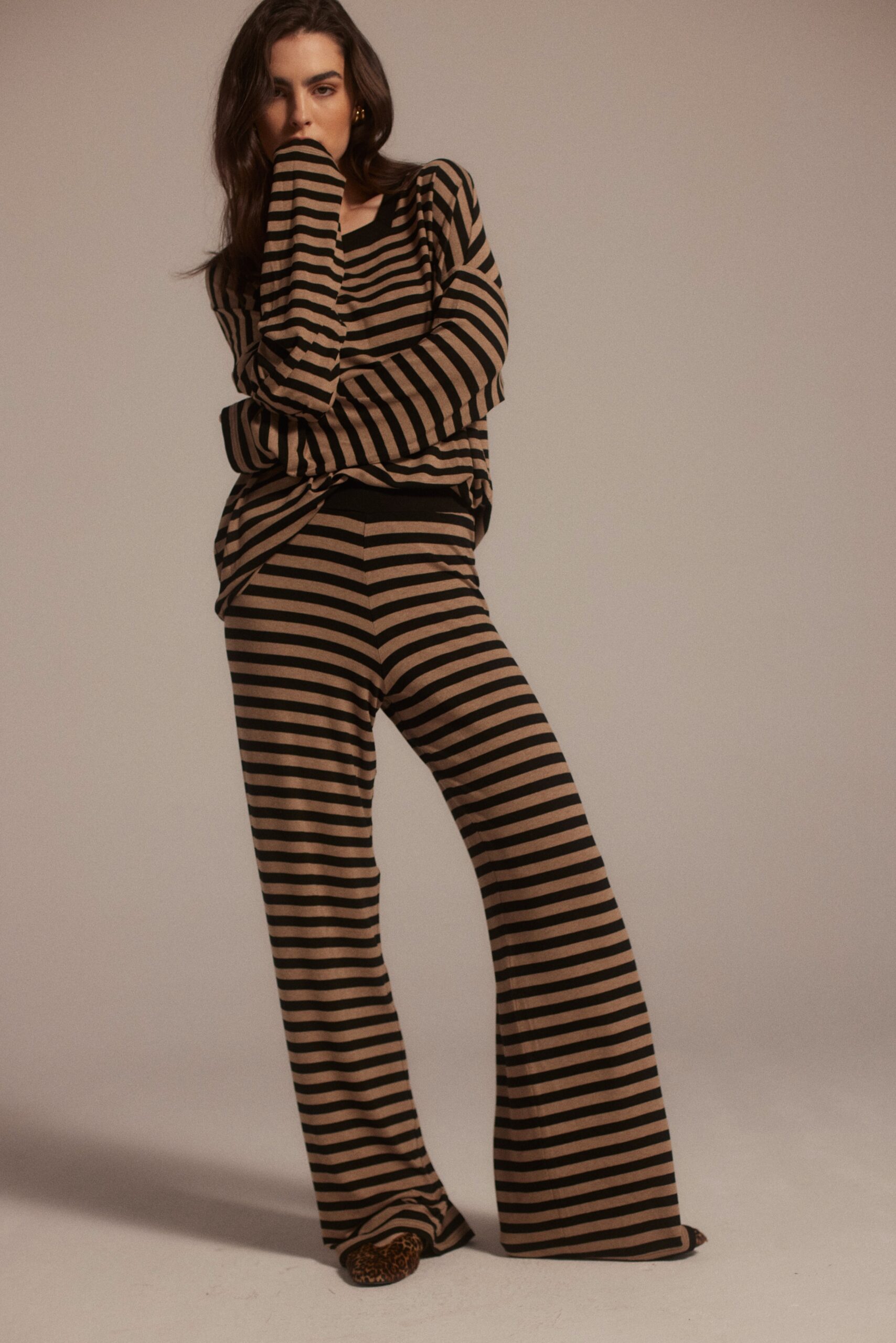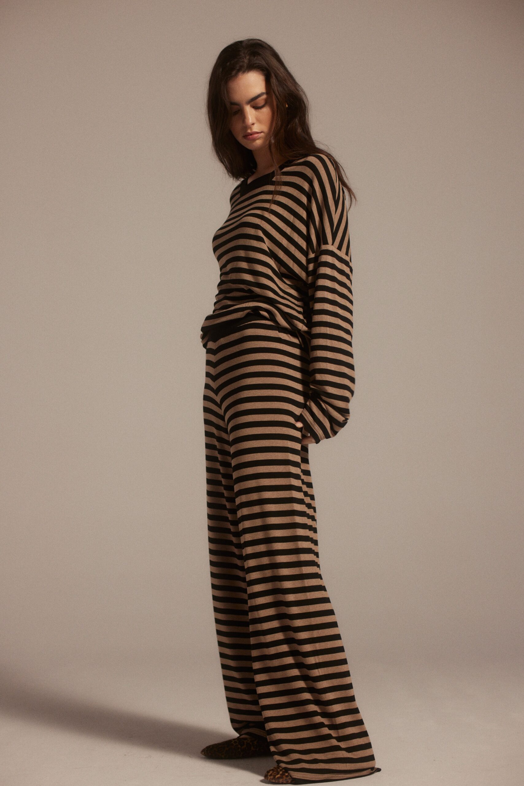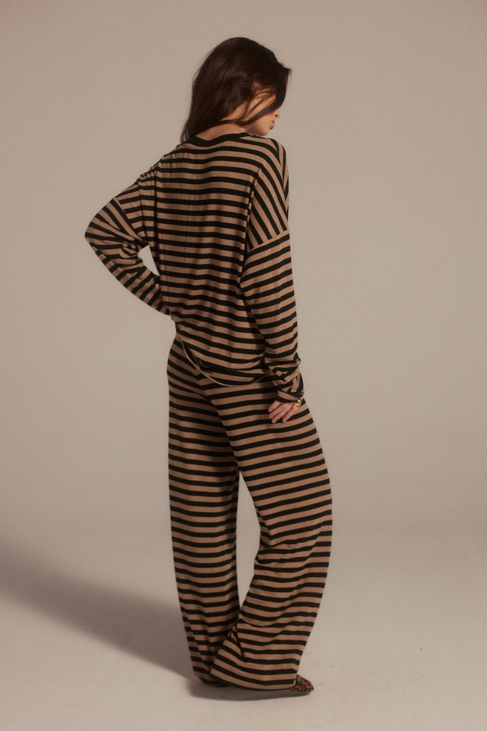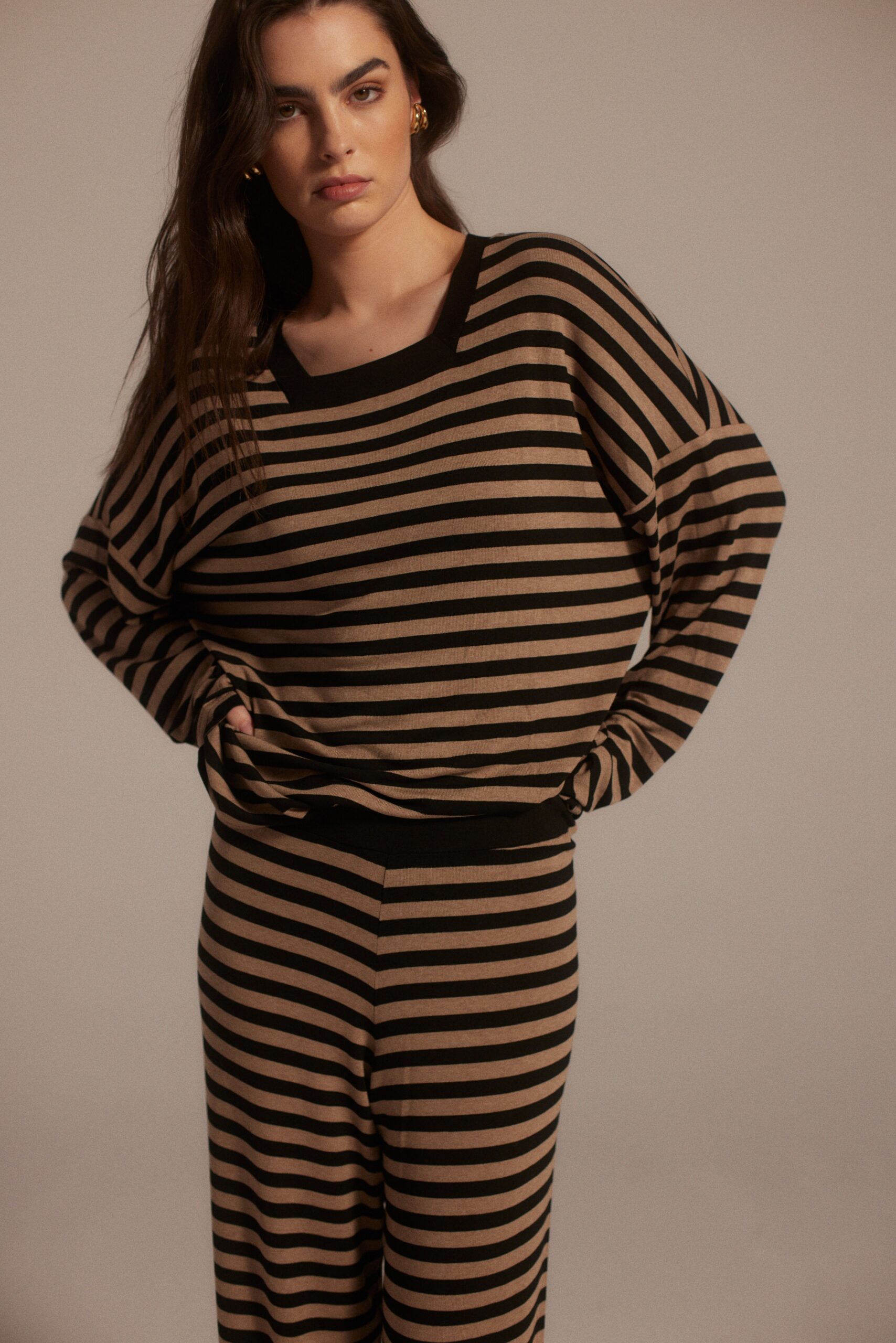 Komplet w paski to idealny wybór na weekendowy, swobodny styl. Bluzka Gisela doskonale pasują do spodni Erik.