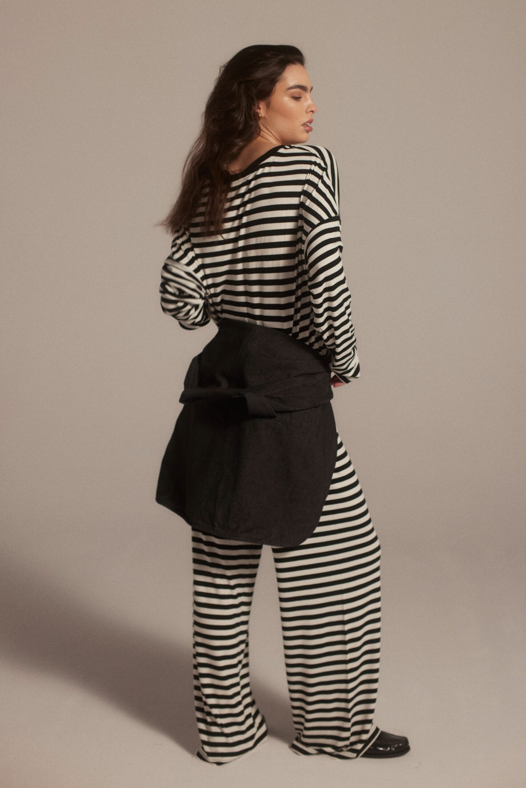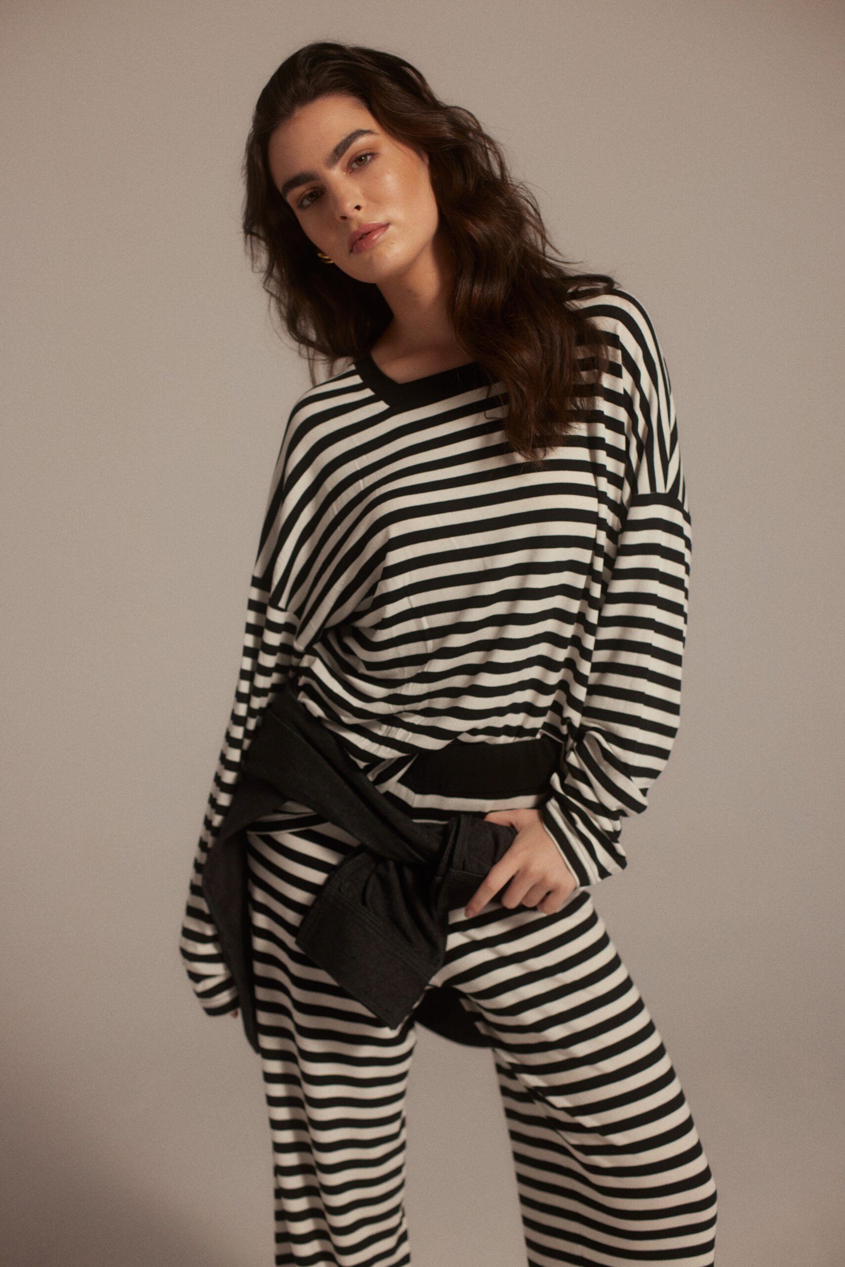 Komplet w paski to idealny wybór na weekendowy, swobodny styl. Bluzka Gisela idealnie pasuje do spodni Erik.