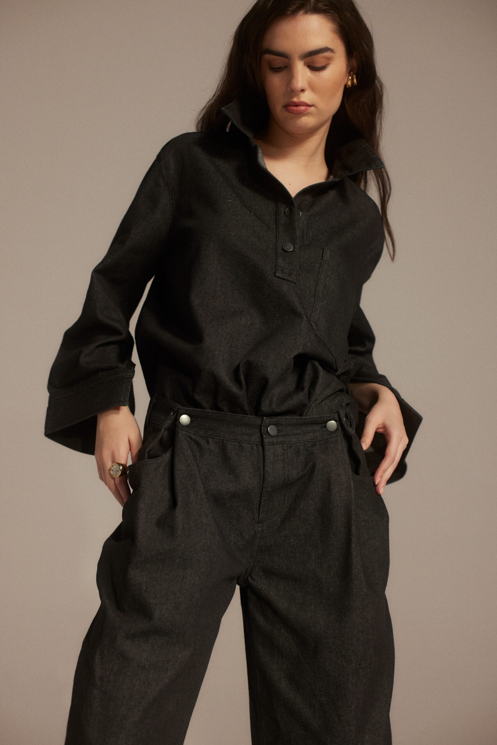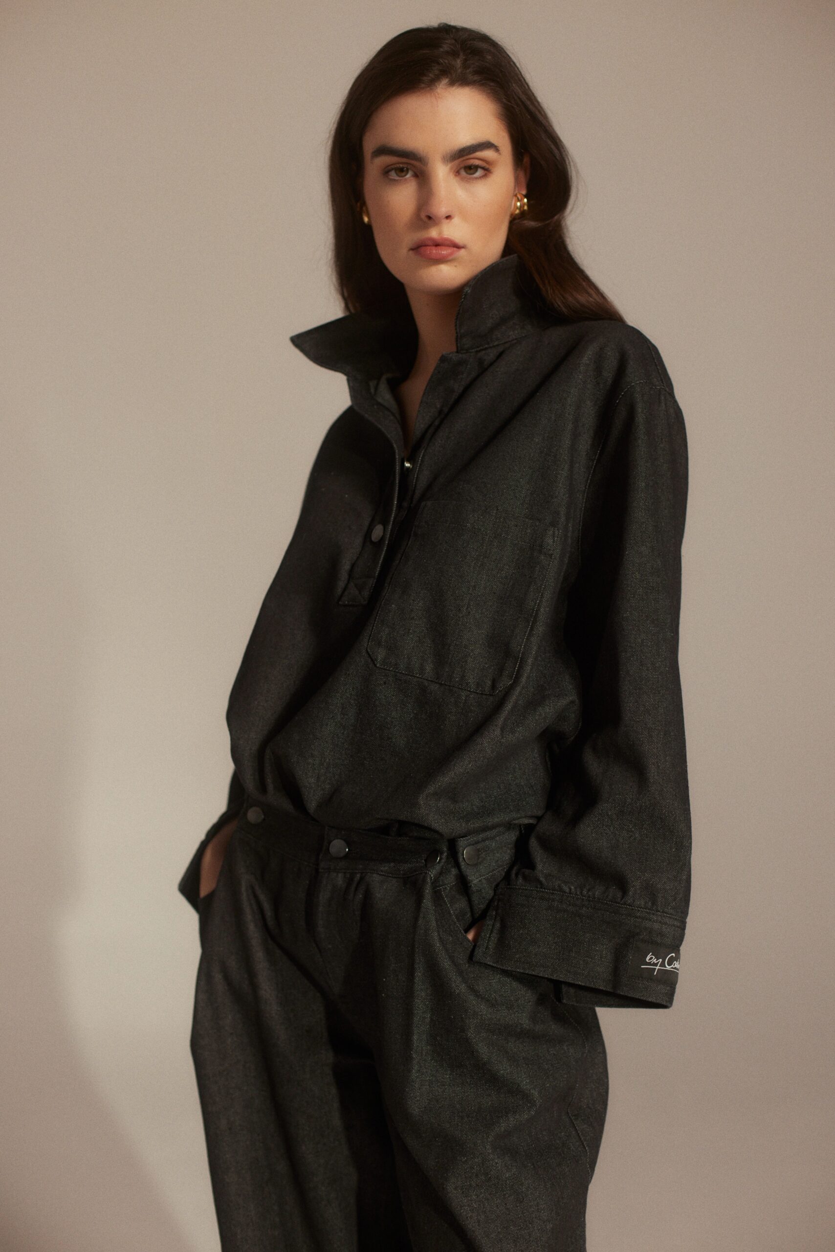 Najlepszym sposobem na noszenie denimu tej jesieni jest całkowite oddanie się materiałowi. Schiaparelli, Versace i Moschino, wśród wielu innych marek, pokazały modelki ubrane całkowicie w dżinsy. I na szczęście nie musisz iść do projektanta, aby uzyskać ten look; po prostu kup pasujący zestaw u nas – spodnie i koszulę i jesteś gotowa na ten sezon.