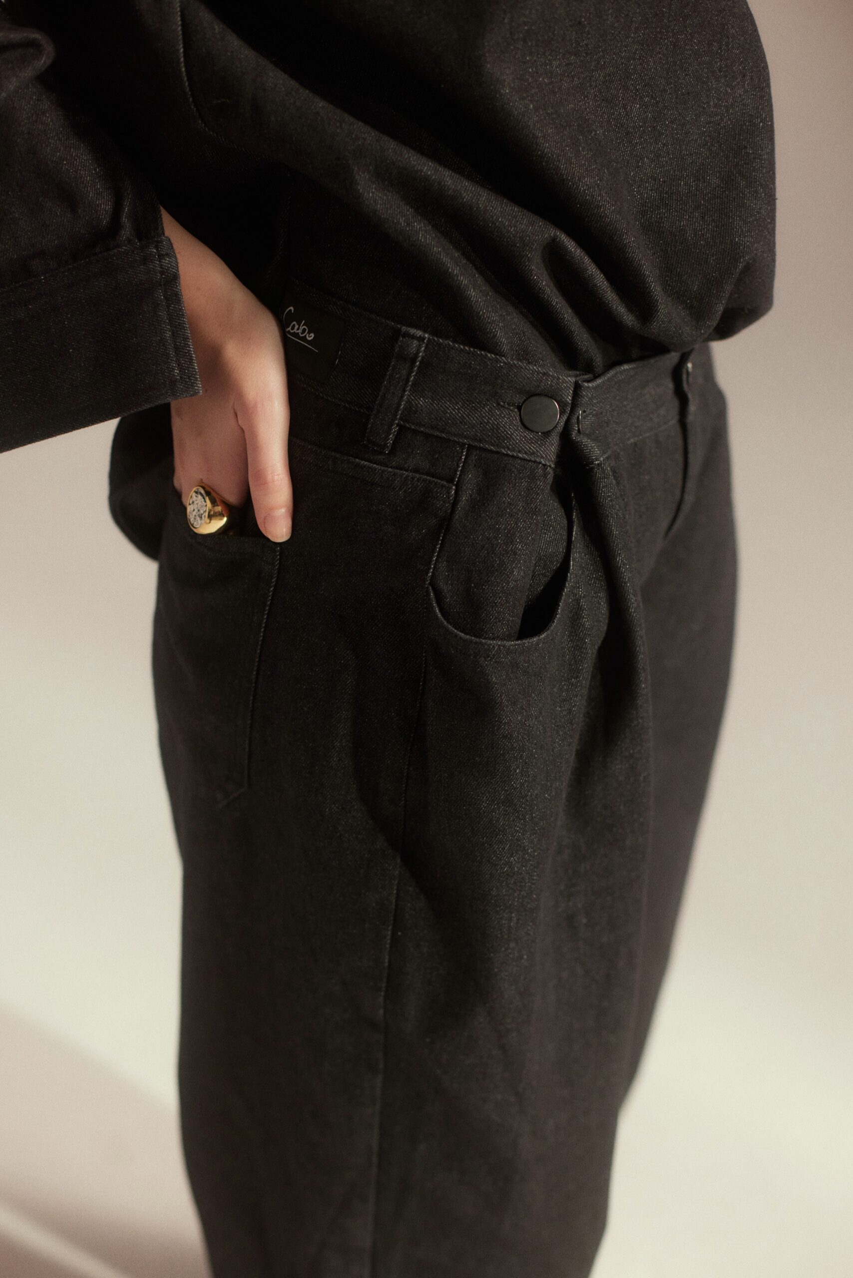Spodnie mają w talii po 2 guziki na stronę, daje to możliwość regulacji i zrobienia 1 lub 2 zaszewek.