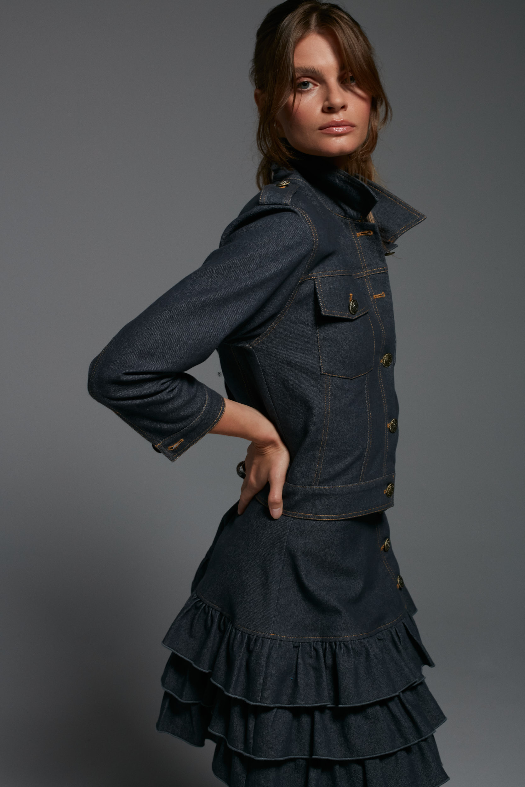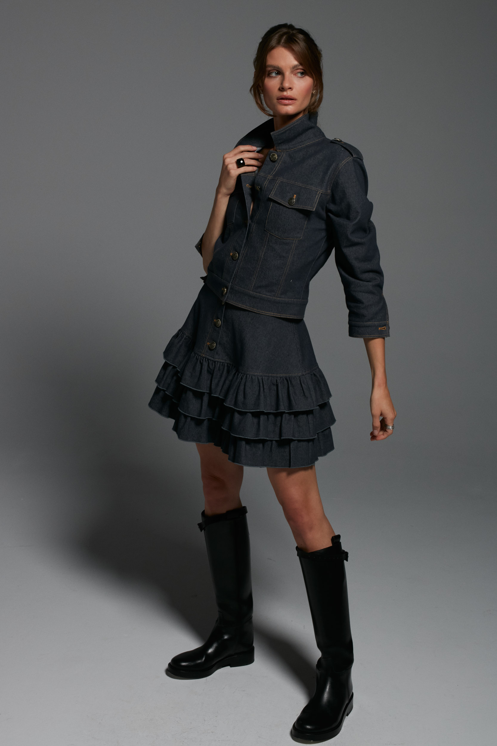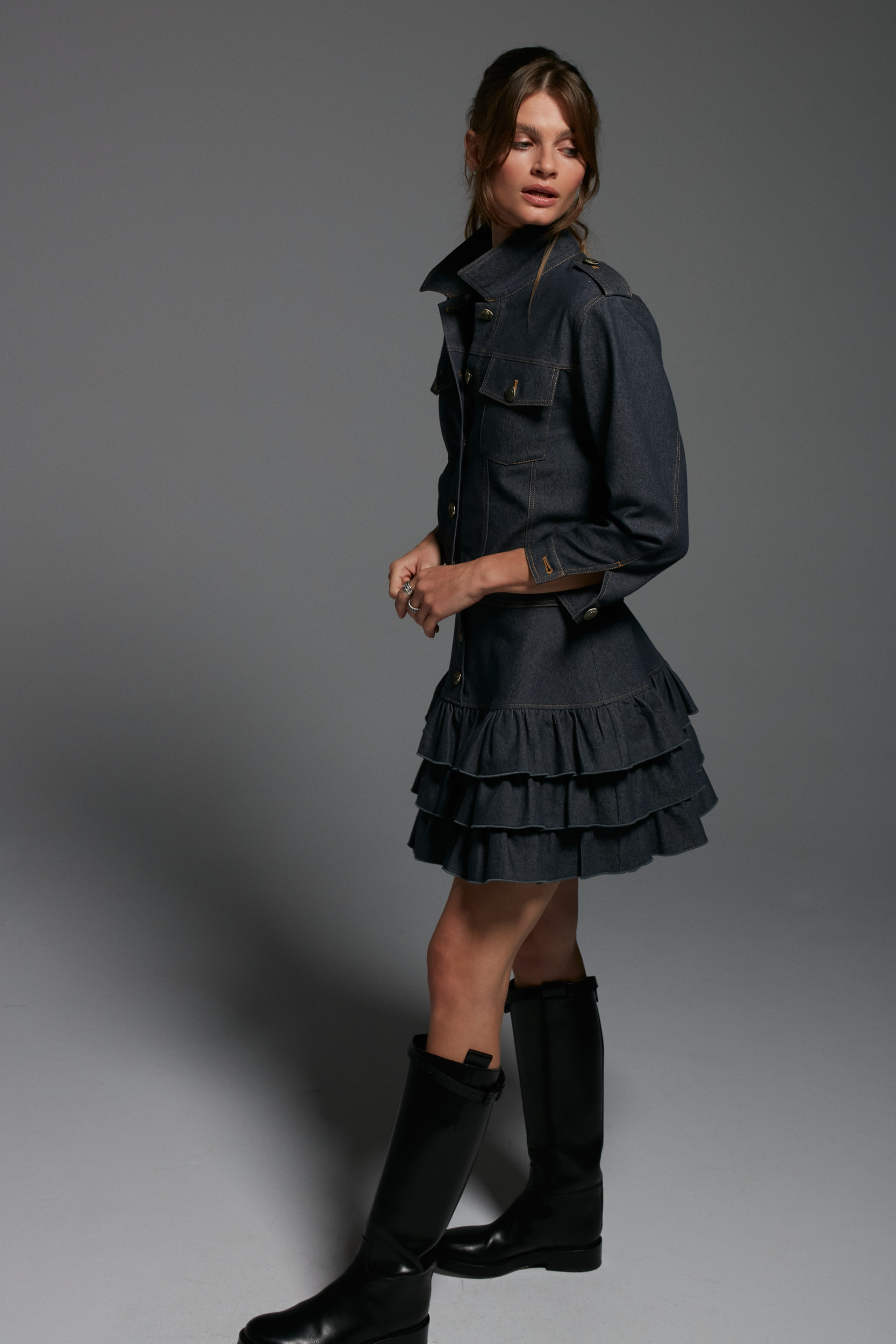 Spódnica z falbanami, doskonale pasuje do kurtki Bristol, ale też do koszuli, t-shirta czy bluzy i swetra.
