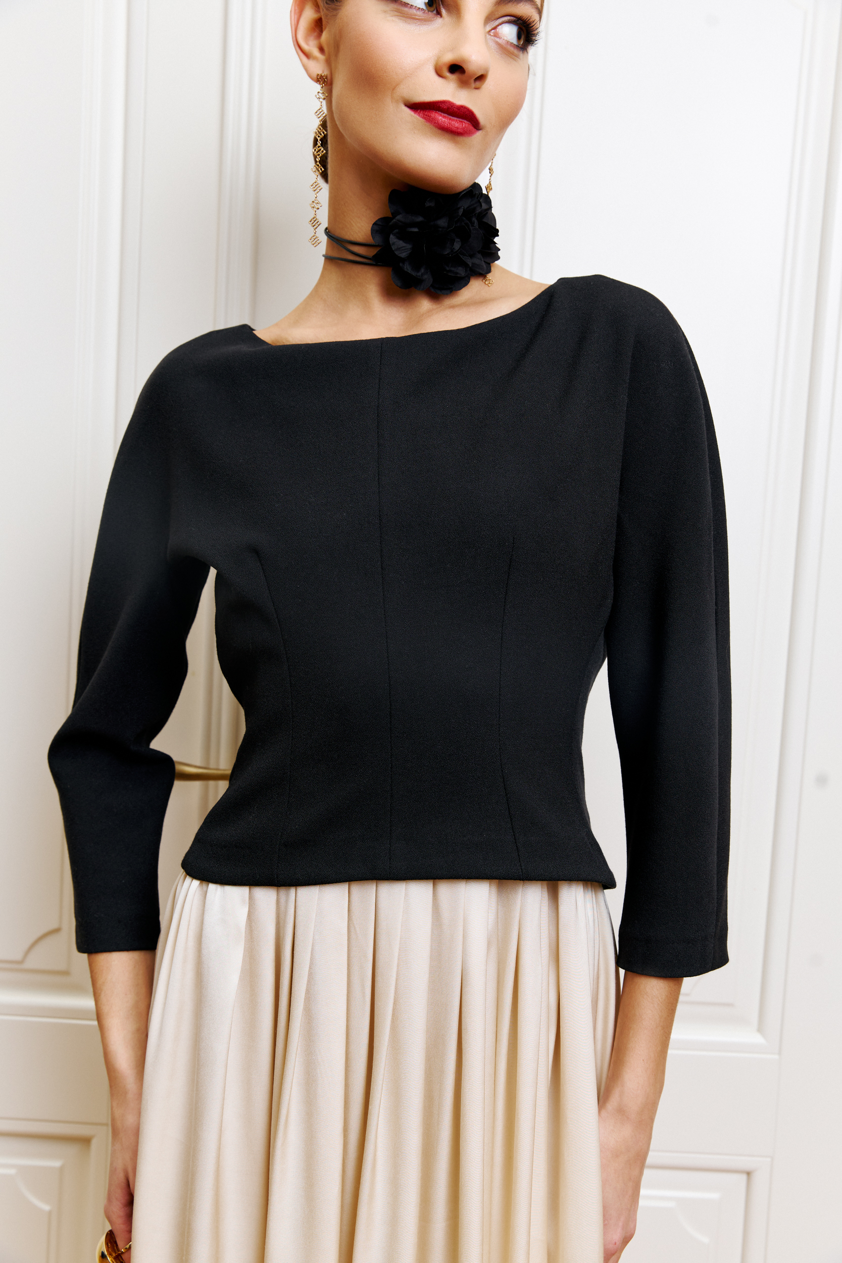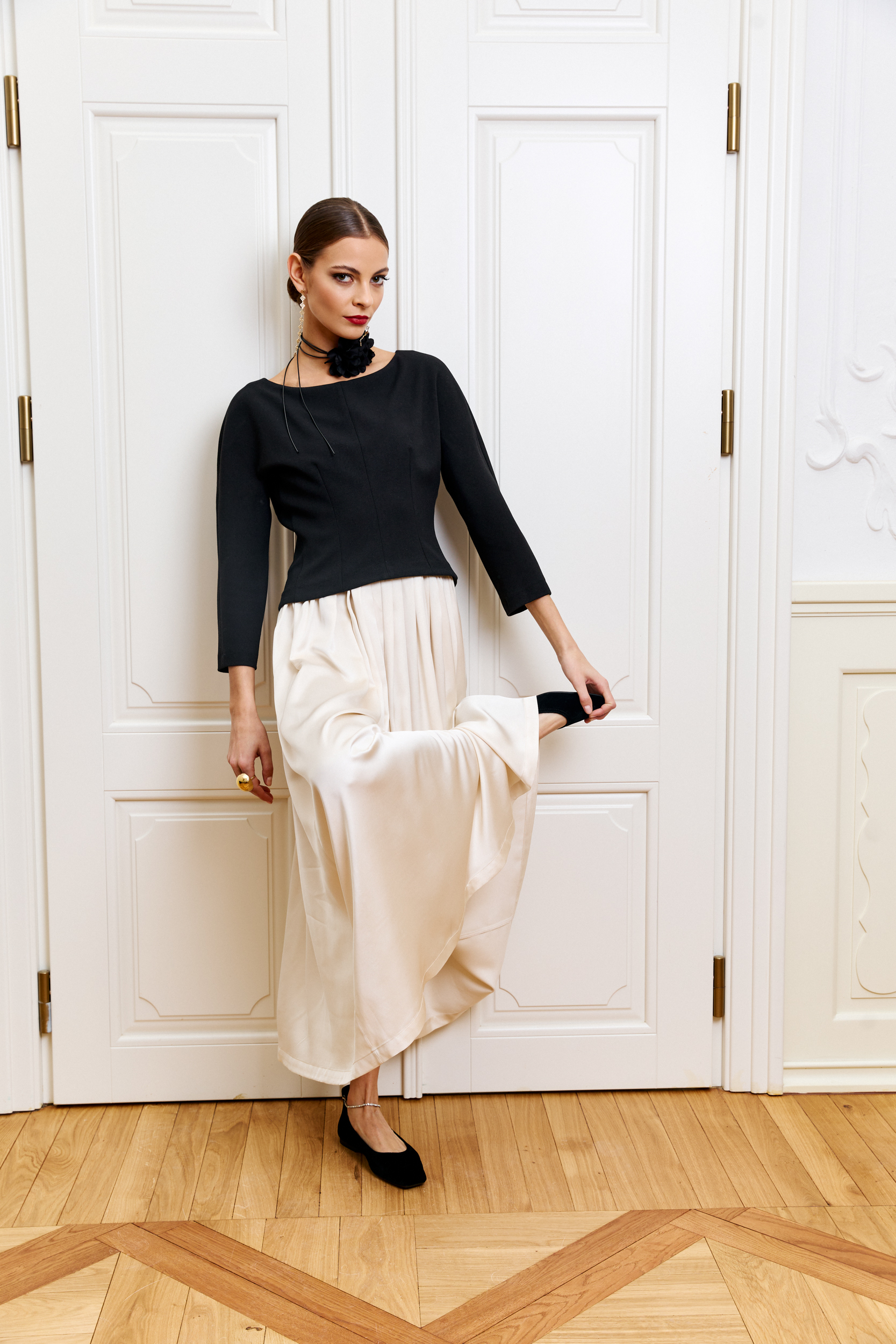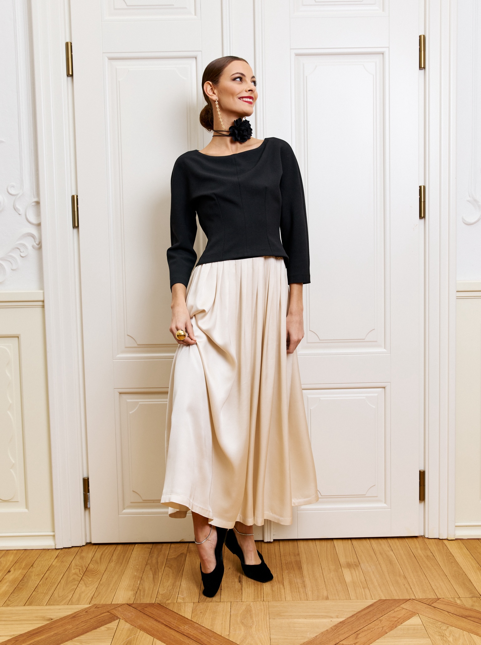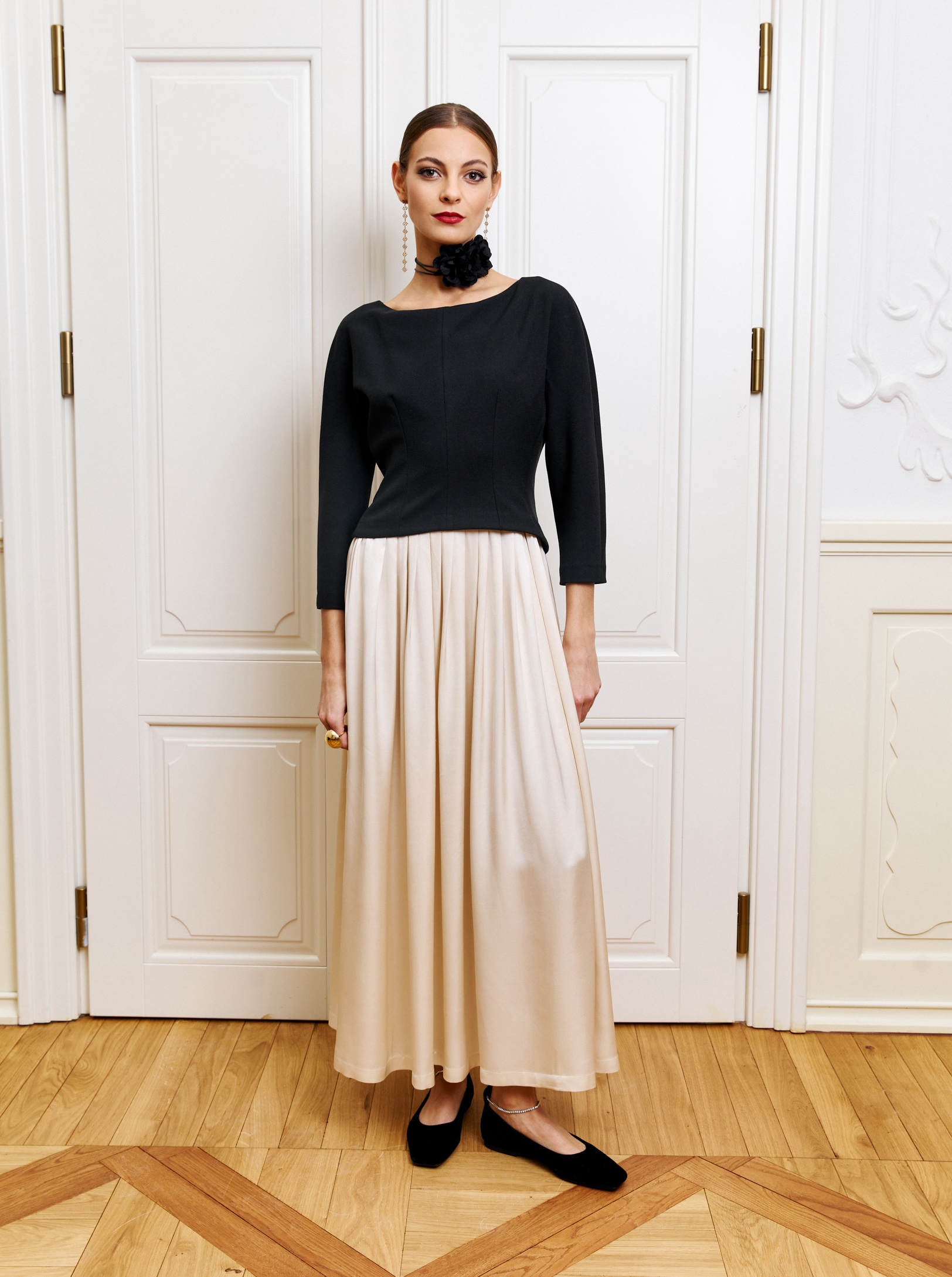 góra sukienki: krepa – 88% wiskoza, 12% elastan, podszewka – 100% bawełna