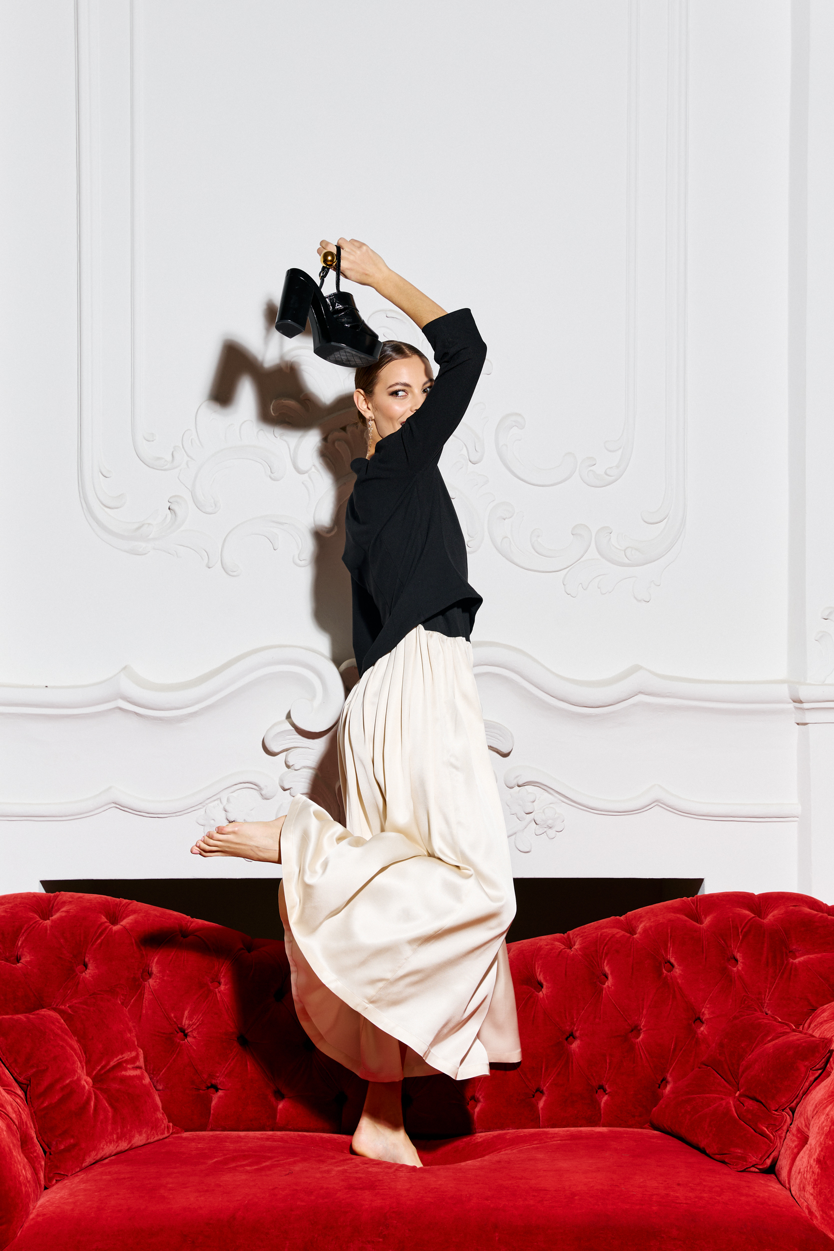 Modelka ma 174 cm wzrostu, na zdjęciach nosi rozm. S