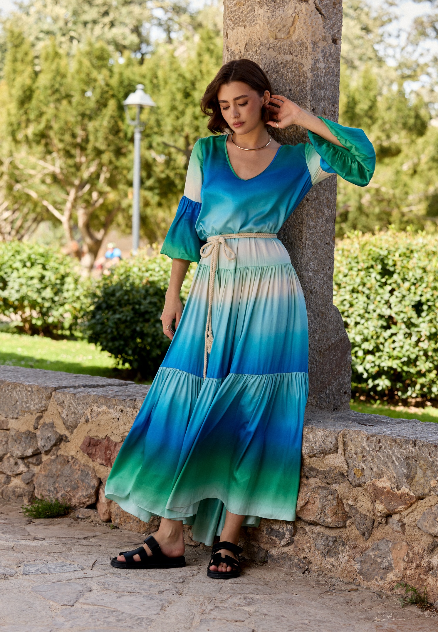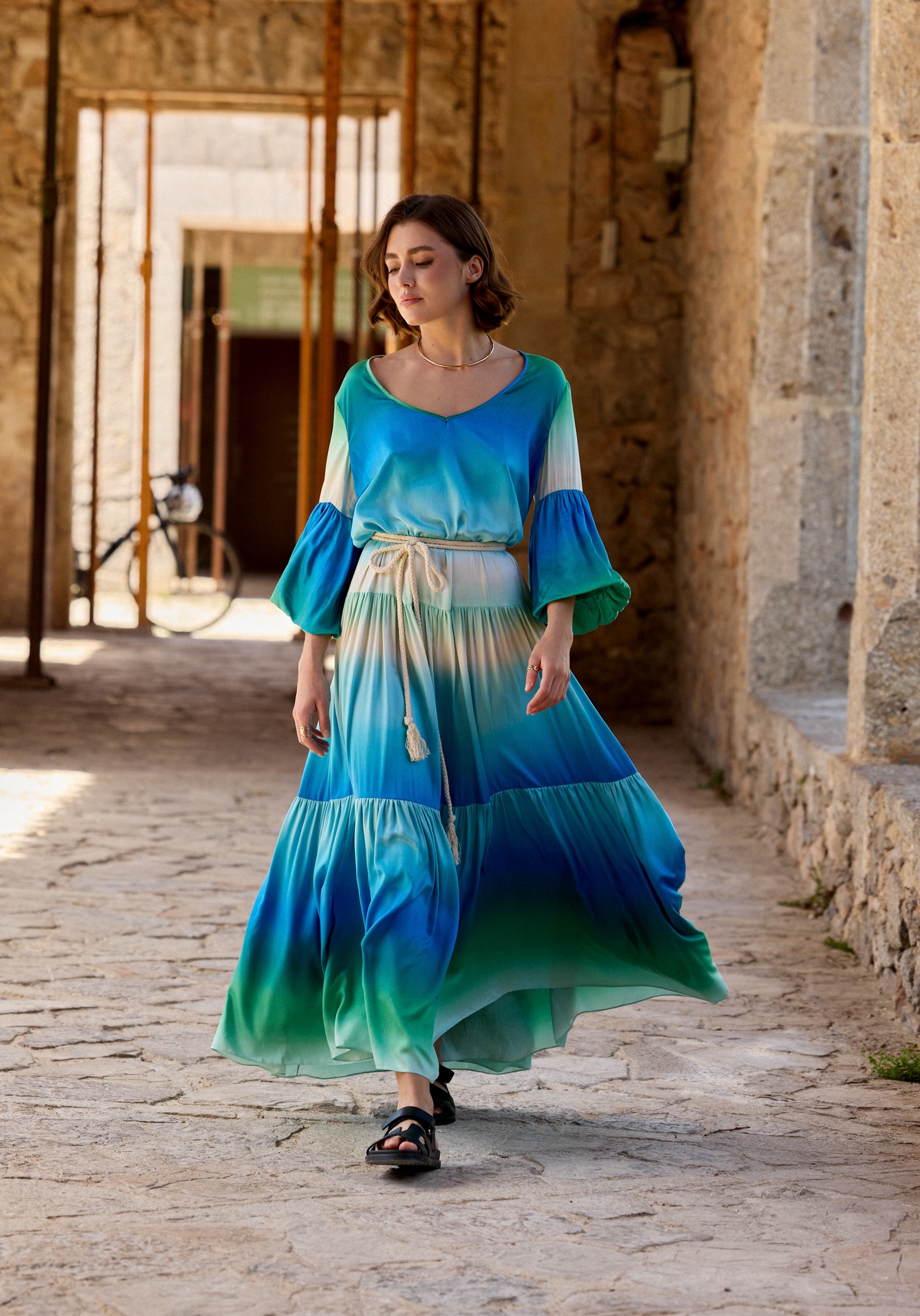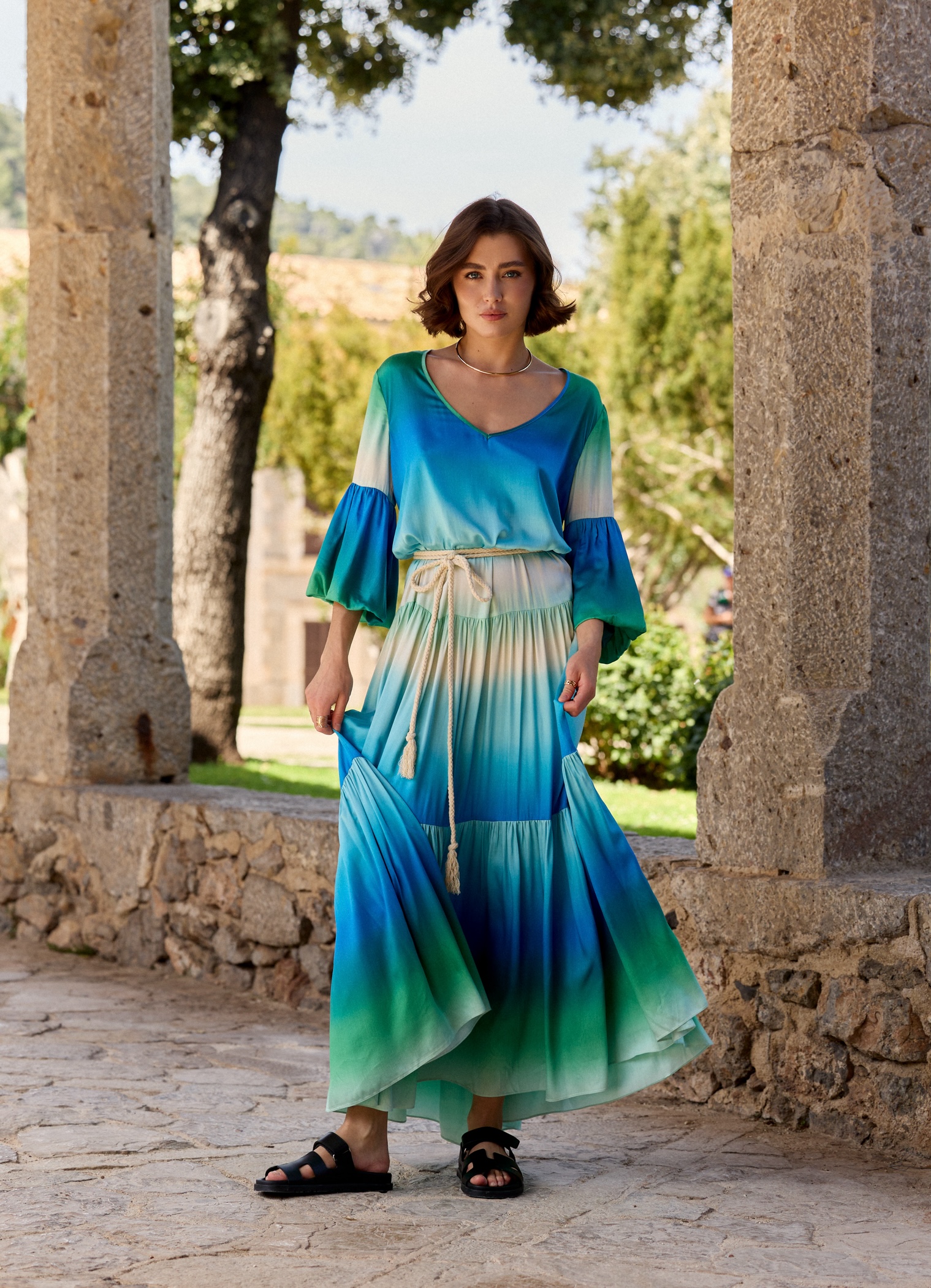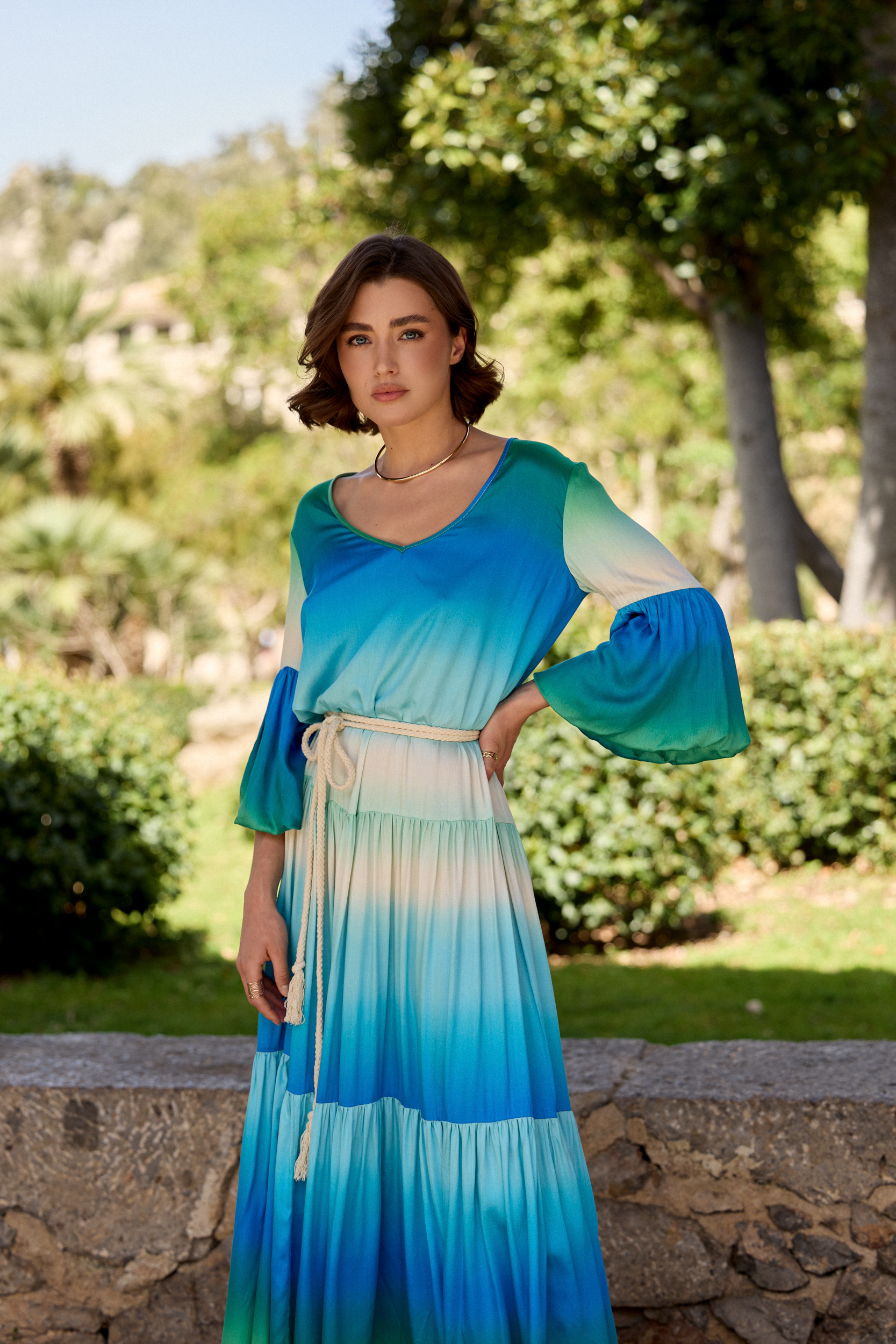Witaj w świecie letniej radości i kolorów 🙂 Ta sukienka to esencja letniego uroku i swobody. Kolorowa paleta odcieni błękitnego turkusu sprawia, że sukienka Sicily jest idealna na letnie dni. Oryginalne rękawy zakończone bombką, fason falban to typowe elementy ubrań byCabo, możesz ją nosić ze sznurkiem w pasie (w komplecie) lub swobodnie, luźno.