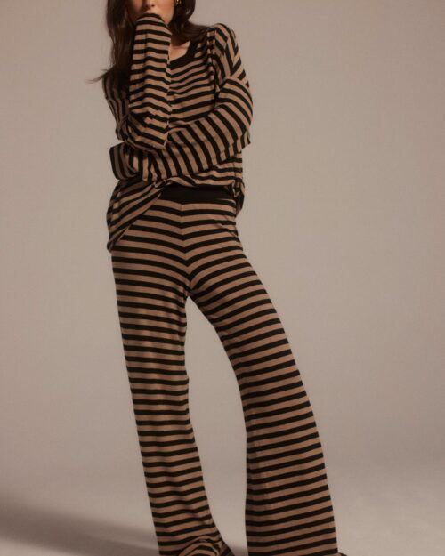 289,00 złPierwotna cena wynosiła: 289,00 zł.125,00 złAktualna cena wynosi: 125,00 zł.Komplet w paski to idealny wybór na weekendowy, swobodny styl. Spodnie Erik doskonale pasują do bluzki Gisela.