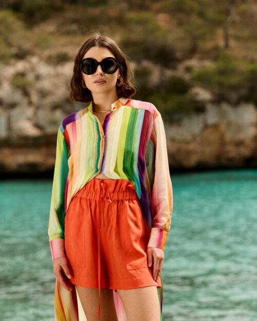 Noszona solo, ta tunika przemieni się w sukienkę, która sprawdzi się zarówno na romantyczny spacer po plaży, jak i na wieczorne wyjście z przyjaciółmi. A jeśli zechcesz stworzyć bardziej miejski look, połącz ją z dopasowanymi cygaretkami, modnymi szortami lub ulubionymi jeansami. Będziesz wyglądać niezwykle stylowo, ciesząc się jednocześnie nieograniczoną swobodą i komfortem.